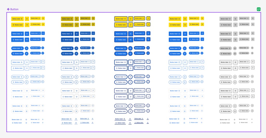 Every component ships with a full set of variants covering size, state, and brand. These are documented as structured properties in Figma so designers can compose screens without guessing, and mapped one-to-one in Storybook for developers.